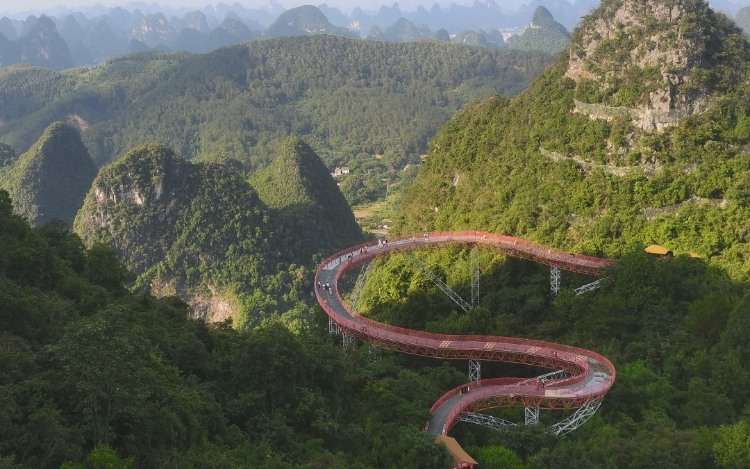 Embark on an unforgettable journey that explores the dramatic beauty of Yangshuo from two unique perspectives: from the depths of its most magnificent karst cave to the soaring heights of its panoramic mountain peaks. You will first delve into the underground fantasy world of Silver Cave, a majestic labyrinth renowned for its shimmering stalactites and stalagmites that form spectacular, otherworldly shapes. Following this, you will ascend to the skies via cable car to Ruyi Peak, an aerial park hailed as Yangshuo's "sky garden." Here, you will traverse a sweeping suspension bridge, walk a thrilling glass pathway along a cliffside, and finally climb to the summit's viewing platform for a breathtaking 360-degree vista of the endless karst landscape. This tour perfectly contrasts the mysterious, cool underworld with the open, awe-inspiring views from above, offering a complete and magnificent Yangshuo experience that caters to adventure seekers, photographers, and nature lovers alike.