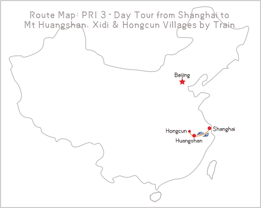 Mt. Huangshan(Yellow Mountain), Xidi & Hongcun Villages are inscribed on the list of World Heritage by UNESCO, and all are situated in Anhui Province. This 3-day tour will let you take round-trip bullet train between Shanghai and Huangshan, and you will enjoy the pleasure of hiking on the picturesque Mt Huang, and indulge into the authentic old Xidi and Hongcun villages with your local guide.