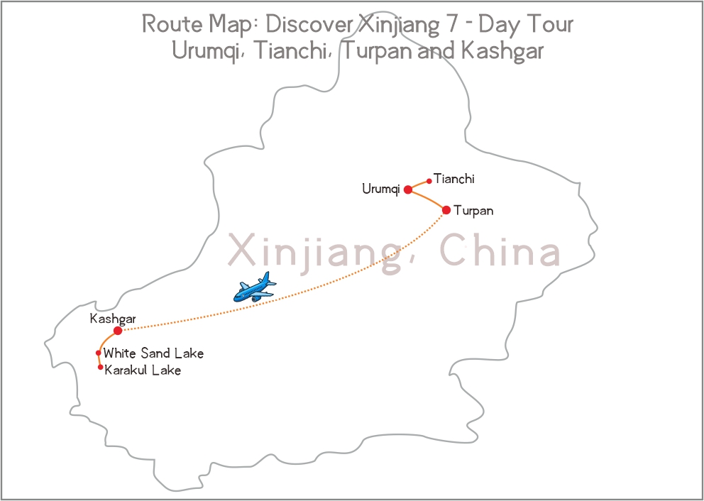 Note: Due to the limited flights from Turpan to Kashgar, you have to get back to Urumqi to catch the flight to Kashagr sometimes.