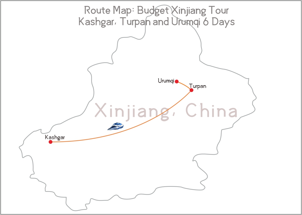 Xinjiang is the biggest province in China with its spectacular history and landscape attracting travelers to explore. This is a budge tour to travel from Kashgar to Turpan and Urumqi by overnight train and car in Xinjiang, China. You will enjoy the adventure on the splendid land on a budget way.
